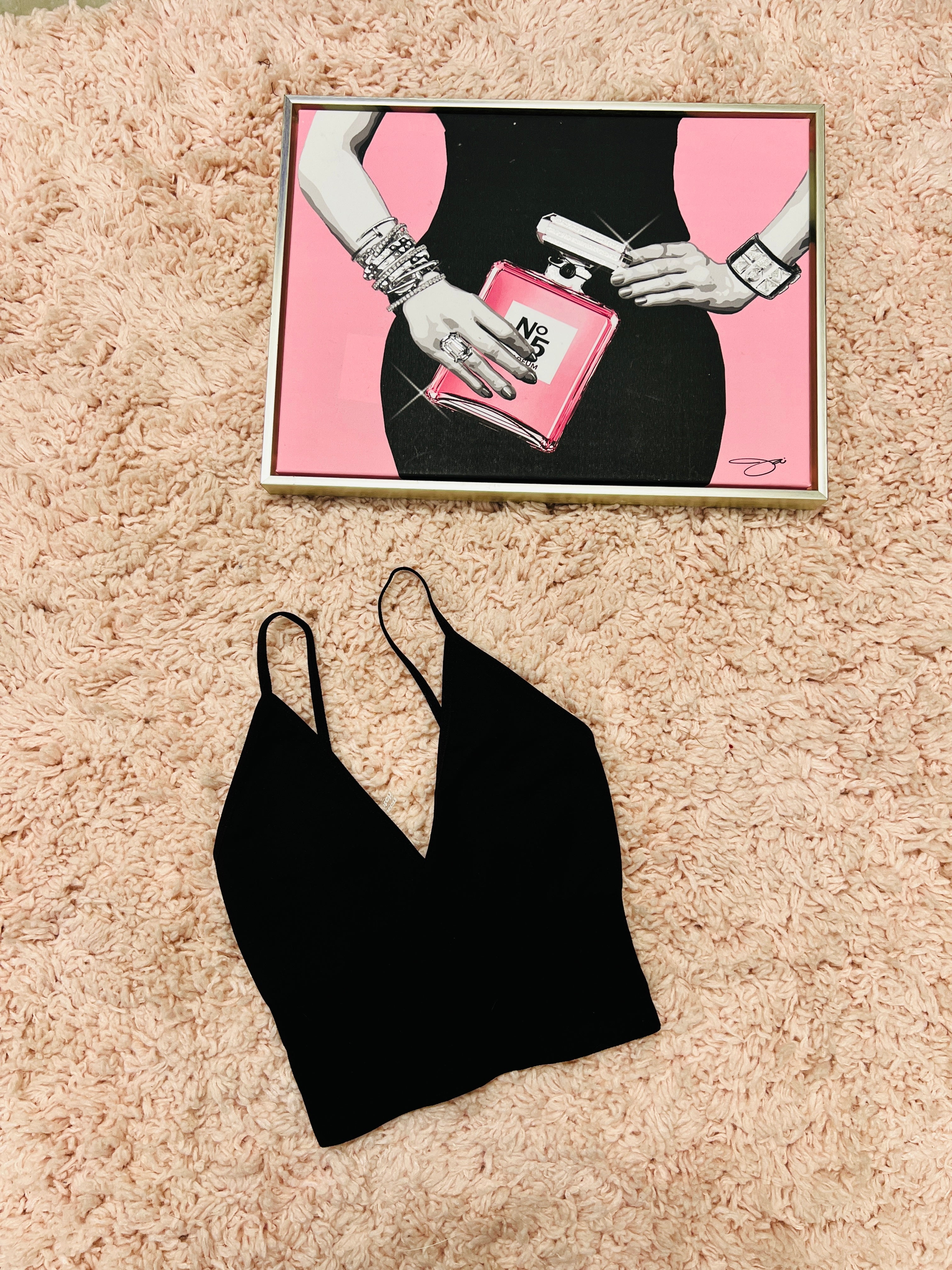 Black Crop Tank Top. Ribbed