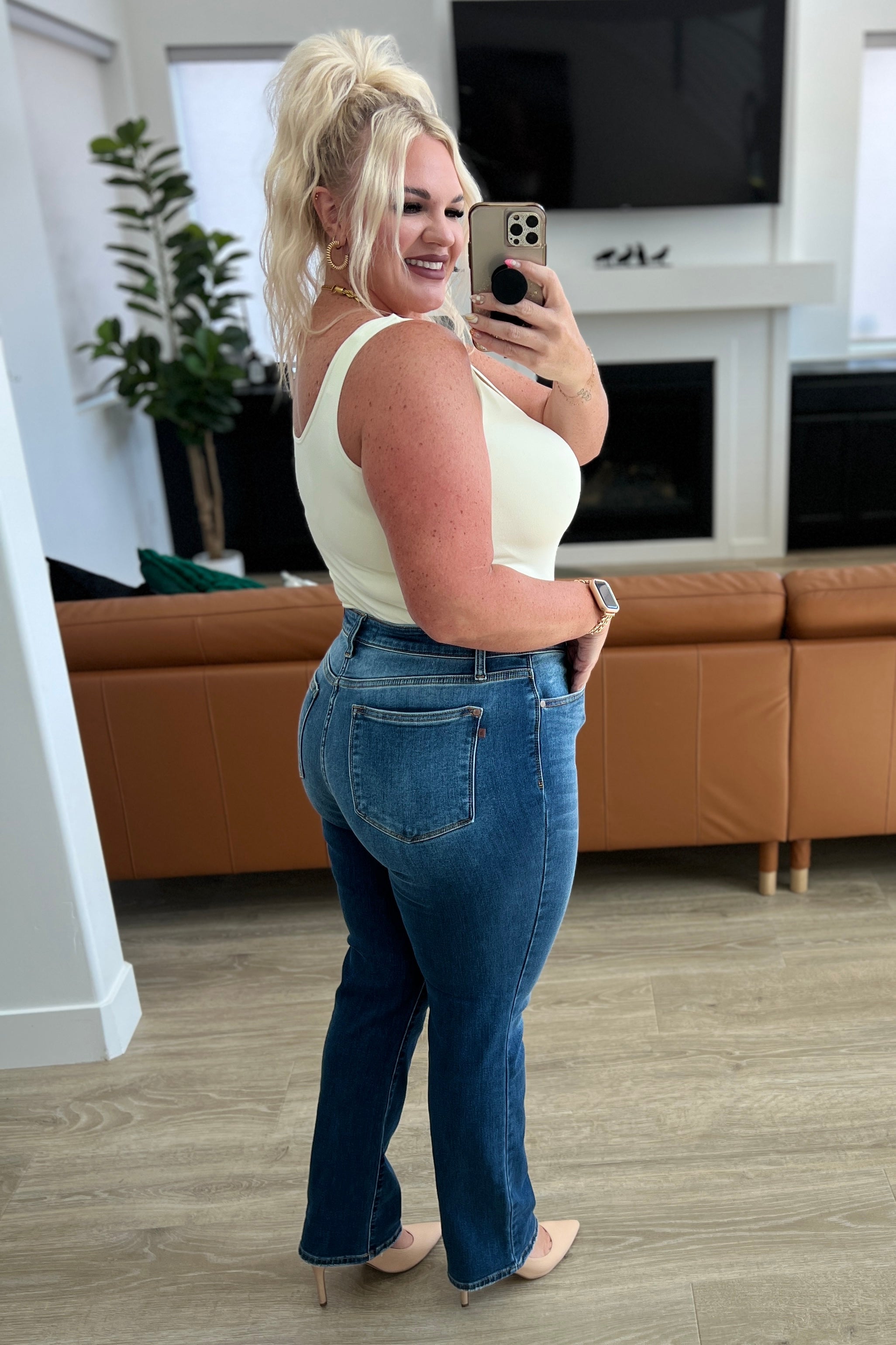 Stay warm year-round with Estelle High Waist Thermal Straight Jeans fro Judy Blue. Crafted with thermal denim and a luxurious brushed flannel-soft lining that traps warm air for insulation, these jeans will keep you toasty on even the coldest winter days. The classic dark wash and no distressing make these high rise jeans the perfect choice for every occasion. Don’t freeze! Who’s ready to stay snug in style?