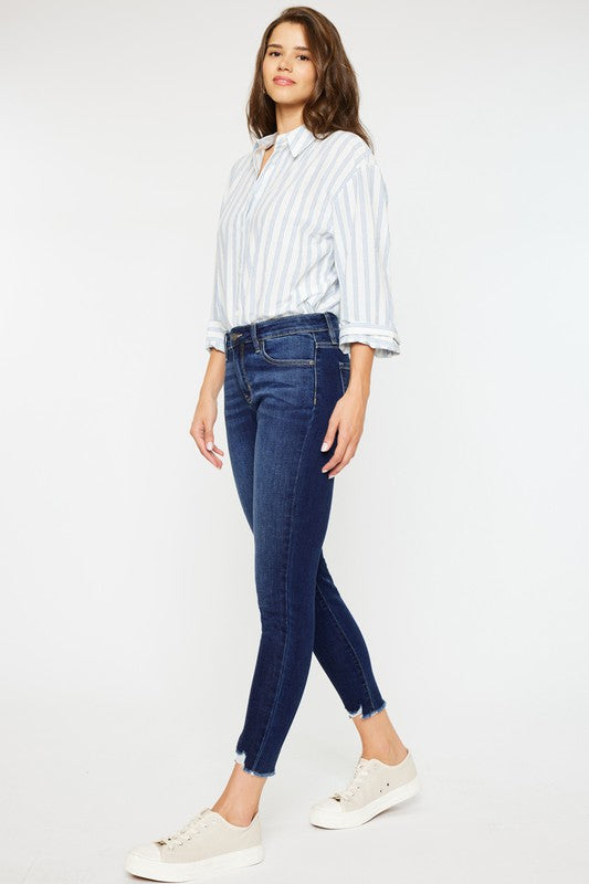 Mid Rise Ankle Skinny Jeans are a versatile and on-trend denim option. With a mid-rise waist and a skinny fit that ends at the ankle, these jeans provide a contemporary and flattering silhouette. They’re perfect for pairing with various tops and footwear, making them a go-to choice for both casual and semi-dressy outfits.
