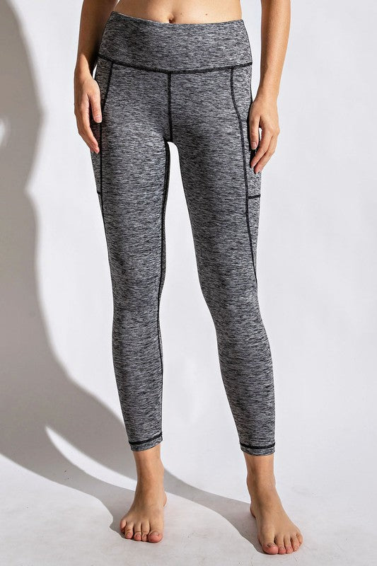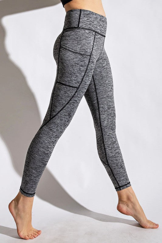 These leggings provide a comfortable and supportive feel. The two-tone design adds a stylish touch, while the full length and high waist offer coverage and a flattering fit. Complete with convenient pockets, these leggings are perfect for keeping your essentials close by.